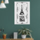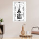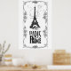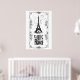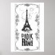 Poster para qualquer Francófilo! Uma poster de Paris, França com a frente e o centro da Torre Eiffel e as palavras Paris France em letras negrito por baixo, todas cercadas com uma armação de flores de ornamentado. Uma peça muito artística para adicionar a qualquer coleção. Vários tamanhos disponíveis.