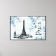Bela impressão da vintage Paris na canvas em múltiplos tons de azul, com pulgas de lis, flores e folhas florescendo. Escuridão negra em torno de toda a design faz uma apresentação impressionante.