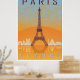 Paris vintage poster in orange and blue textured background with skyiline in white