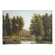 Este design apresenta uma pintura do artista francês Jean-Joseph-Xavier Bidauld (1758-1846). Mostra uma bela paisagem ao redor de um lago barco num parque em Mortefontaine, França norte. O lago parece um rio. Há um barco na água com pessoas a desembarcar. Há também cisnes a nadar na água. Árvores altas cercam o lago. O céu é azul brilhante e contém algumas nuvens brancas e espertas. O trabalho artístico original foi pintado em 1806.