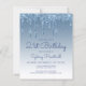 Este convite de festas de tendência apresenta uma borda de gotejamento azul brilhante e azul brilhante e fundo azul ombre. As palavras "aniversário de 21 anos" e o nome do convidado de honra aparecem no script de escrita manual azul casual, com o resto do texto personalizável na fonte azul sans serif. O mesmo design de gota a gota azul aparece no verso. (NOTA: Os envelopes não são incluídos automaticamente com este convite orçamental. Para adicionar envelopes ao seu pedido, use o menu suspenso "Envelopes".)