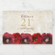 Estas elegantes etiquetas de vinhos de aniversário de 21 anos floral apresentam rosas vermelhas pintadas em aquarela com um nome e data para personalizar na caligrafia moderna em um fundo de ouro shimmer com falso brilho dourado. Desenhada por Susan Coffey.