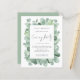 Um valor para o alternativo do ORÇAMENTO em tamanho menor de 4,5 x 5,6" de semirbrilho de 110 lbs, que é de espessura semelhante a um cartão postal (no entanto, não é adequado para uso como cartão postal). POR FAVOR, OBSERVE QUE HÁ UM convite por folha. Convite de festas Eucalyptus da Noite do Orçamento. Com um script de estilo manuscrito de na moda para o Partido da Noite e o resto do texto que você pode personalizar facilmente. Uma borda de eucalipto verde esmagador envolve o texto.