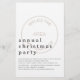 Convite Grande Minimalista de Partido de Feriado de Funcionário de Orçamento. Um alternativo maior de 5,5" x 8,5" a um preço orçamentário. Disponível em um STOCK DE CARTÃO SEMI-GLOSS de 110 lb ou em um STOCK de CARTÃO LINEN elegante de 115 lbs de acordo com o padrão (ambos recomendados para convites mais espessos), há também algumas opções de PAPEL FINO (que são ideais para gabinetes). OBSERVE QUE OS ENVELOPES OPCIONAIS SÃO UM POUCO MAIORES QUE O CONVITE A 6,75" x 9" aprox. O cabeçalho é grande em na moda-lowercase com os detalhes abaixo parcialmente sobrepostos ao seu logotipo pintado em segundo plano. Personalize facilmente o texto de ambos os lados para os seus próprios detalhes. Substitua a imagem de exemplo na parte frontal pelo logotipo de sua empresa e clique em personalizar ainda mais para ligar ou desligar qualquer uma das camadas de opacidade, se necessário, para torná-la mais escura ou mais leve.