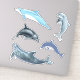 Cinco adesivos em forma de golfinho para usar em uma festa de aniversário, festa de verão ou para raspar diversão. Golfinhos em azul e cinzas estão nadando e pulando em placas adesivas que vêm em vários tamanhos. Adicione a festa de aniversário a favor das bolsas ou dê-as na sala de aula.