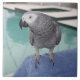 Papagaio-Cinza-africano do Congo, ao lado da sua toalha azul e a desfrutar do sol! Bonito penas de cinza rechonchadas contra fundo de verde-aqua e azul-aqua. Perfeito para o amante de pássaros em você!