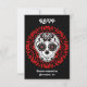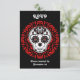 Um crânio de açúcar artístico e fofo em branco, vermelho e preto com muitos sotaques elegantes em cartões RSVP para personalizar para qualquer ocasião.