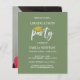 Convite para Festa de formatura de orçamento com tipografia manuscrita moderna e escovada e um boné de formatura com espaço para seu retrato favorito do formando no verso da placa.