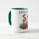 Páscoa duas caneca combo com coelho, cesto e ovos coloridos.