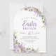 convites de festas de perfuração de Páscoa impressas personalizadas do barato. Este bonito design feminino tem uma borda floral de cor d'água com flores roxas pastel e verde. Personalize o modelo com os detalhes do evento. O verso tem um padrão de faixa de aquarela roxa ou use o espaço para adicionar texto e fotos adicionais. Clique em Personalizar para escolher qualquer cor de fundo e editar as fontes de texto e as cores para criar um convite de janta de Páscoa exclusivo.