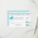 Cartão de resposta de casamento com passagem de embarque para combinar com a Passagem de Embarque de Chipre. Mapa de Chipre com Palmeiras em uma cor Azul Oceano.