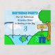 Pesca verde e azul em um lago, "Gone Fishin", festa de aniversário do menino temido. Basta editar o nome, a idade e as informações da festa na área de personalização!