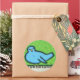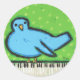 pássaro azul no piano com fundo de ponto verde nos adesivos
