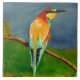 Esta é uma impressão de uma das minhas próprias pinturas; o original foi feito em acrílico na canvas. Penas coloridas de pássaro (um rei-pescador) com a luz do sol nas costas, em contraste com as nuvens de tempestade que se aproximam.