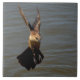 Fotografia de um pássaro bonito da raquete voando sobre a água, impressa em um Azulejo. - Você poderia usar esse azulejo na cozinha, na piscina ou no banheiro com o resto de seus azulejos.