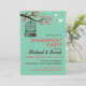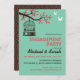 Convite de casamento russo com jaula de pássaros vintage pendurada em uma árvore e dois pássaros amantes voando de graça. Decorado com o padrão de vintage na parte traseira do cartão. Personalize o texto para Chá de panela, chá de fraldas, festa de noivado, festa de solteira, festa de churrasco, aniversário, aniversários e muito mais. Obtenha cartão RSVP, selo postal e adesivos do meu compro zazzle.