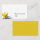 Cartões de mesa de pássaro do paraíso para uso como cartazes de escolta ou de lugar. Cartões brancos com uma flor tropical em amarelo brilhante e azul no canto inferior e texto de script personalizado para o número da tabela. Escreva os nomes em cada carta para escoltar os convidados às respectivas mesas. Ou apagar o texto de exemplo e usar apenas para nomes (colocar cartões). O reverso é amarelo ouro.