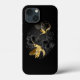 Joias pretas e douradas, beija-flores, sobre fundo de cinza decorado com plantas. Pássaros joalharia. Pássaro ouro. Pássaro Dourado.