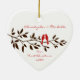 Nossos primeiros enfeites de natal caracterizam um par à moda de pássaros vermelhos do amor que sentam-se em um ramo azul! Personalize com sua informação e data e você são todos ajustam-se para ir! Presente datado maravilhoso da lembrança para seu primeiro Natal e uma grande adição a você coleção dos enfeites de natal.