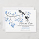 Nosso cartão de anúncio de casamento moderno e elegante "save the date" de outono é o toque perfeito de classe para anunciar seu casamento para amigos e familiares. Nosso cartão "save the date" dos elegantes passarinhos apaixonados apresenta um casal de passarinhos sentados em um galho com folhas azuis sobre um fundo branco com um verso de folha correspondente. Visite nossa loja para ver selos postais, adesivos e ímãs "save the date" correspondentes. Este design está disponível em mais de 12 opções de cores em nossa loja e é perfeito para um anúncio de casamento de outono.