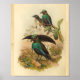 Ilustração de 1878 Vintage de Birds of Paradise. Com penas verdes, roxas, pretas e azuis sentadas num galho de árvores.