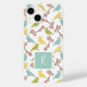Capa de telefone celular com design de aquarela de aves raspadas e flores em matizes de pasta mole. Personalize-o adicionando suas iniciais para um toque exclusivo.