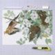 As pombas empoleiraram-se em um lenço de papel natural de florescência do impressão da aguarela da árvore de maçã.