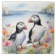 Pássaros Puffin na Costa Floral com Flores Selvage