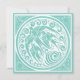 Ilustração vintage em arte nova cor azul-turquesa com animais, apresentando vários pássaros voando no centro, cercados por redemoinhos de vento ou ondas do oceano, com borboletas e estrelas nos cantos.