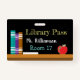Um simples passe de biblioteca com um quadro negro, três livros e uma maçã. Pode ser facilmente personalizado com o título de passe, o nome do professor e o número do quarto (ou o nome da escola). Visite nossa loja para passagens de salão com um tema diferente. © ArianeC Ilustrações