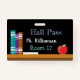 Um salão de estudante básico passa com a ilustração de um conselho preto, três livros, uma maçã vermelha e um giz branco, Use o modelo para personalizá-lo com suas informações. © ArianeC Ilustrações