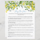Neste verão, o cartão de jogo "Pass the Poem" do limão é fácil de personalizar usando o modelo Zazzle fornecido. Quer você esteja jogando uma chá de panela para um amigo ou membro da família, comemore a adorável noiva a encontrar seu principal aperto e crie um chá de panela inesquecível com este jogo de poemas inspirado nos citros. Entre em contato com o designer para verificar se há variações neste design ou se há produtos correspondentes.