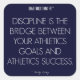 Um adesivo motivacional de atletismo com uma citação de Felicity Luckey of Excelente Mente Think Ajustado™. Há oito citações de atletismo nesta série. Todas as citações estão disponíveis em adesivos, posters, ímãs de geladeira e relógios de parede. A citação neste adesivo diz: "Disciplina é a ponte entre suas metas de atletismo e sucesso de atletismo" ~ Felicity Luckey.