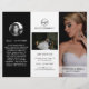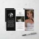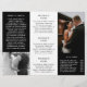 Folheto trifold de fotografia moderna mostrando suas fotos favoritas em um design elegante em preto e branco. O painel frontal tem uma foto com sangria total junto com duas linhas de texto sobre um banner transparente na parte inferior. O painel traseiro externo tem o logotipo da sua empresa e uma linha de texto acima de uma foto horizontal e suas informações de contato abaixo. Adicione seu retrato e sua biografia ao painel que se dobrará dentro do folheto. O interior tem uma imagem nos painéis esquerdo e direito junto com um modelo para informações à esquerda, seus pacotes no meio e uma lista de preços à la carte no painel direito. Este folheto trifold profissional é perfeito para um fotógrafo de casamento.