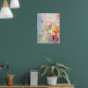 Bonitos tons de rosa, azul e amarelo neste impressão de poster floral com abstrato de aquarela. Disponível para ser enquadrado.