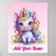 This dreamy pastel baby unicorn with a rainbow mane and golden horn brings a touch of magic to any nursery or child’s room. Personalize with your child’s name for a one-of-a-kind gift they'll cherish forever.
