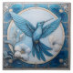 Pastel blue faux relief Art Nouveau Hummingbird R