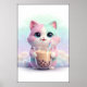 An irresistibly cute pastel kitty enjoying a cup of bubble tea, designed in soft kawaii style with dreamy colors and fluffy details. This artwork brings a calm, happy, and playful vibe, making it perfect for stickers, posters, phone cases, kids’ room decor, and gifts for bubble tea and cat lovers.
