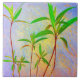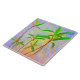 O trabalho de arte tropical em cores pastéis neste Azulejo cerâmico de 6" foi feito a partir de uma fotografia original de ZoeSPEAK. A foto olha para os caules longos e finos das plantas enquanto a luz do sol brilha através de suas folhas verdes-claras. O fundo azul claro está colado com amarelo e salmão rosa.