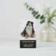 Este cartão de visita de travamento do animal de estimação do olho caracteriza um cão australiano muito legal que senta-se na neve. Este doce, pastor australiano colorido preto fêmea do puro-sangue tri agarrará certamente a atenção. Senta-se com sua cabeça inclinada leve com uma expressão curiosa em sua cara. Coloração bonita, com uma veste branca grossa, uma chama larga e umas marcações marrons ricas da cara. Ambos os lados são inteiramente customizáveis com sua própria informação profissional ou pessoal. A grande escolha também para groomers do cão, instrutores, agilidade bate, reunindo os eventos etc.