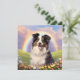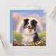 Um cartão de compaixão personalizado australiano Shepherd com uma bela pintura de um Shepherd australiano numa colina celestial com uma bela sobrecarga do arco-íris. Simbolizando o cão Shepherd australiano passou a ponte do arco-íris para o céu de cão. Você pode personalizá-lo com o nome de seu próprio cão pastor australiano ou qualquer outro texto no verso do cartão. Faz um memorial especial ou um presente de simpatia para qualquer amante australiano de cão pastor se o seu querido cão tiver passado.