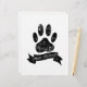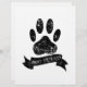 Pata de cachorro em relevo com fita preta. O melhor amigo do homem. Imagem em preto e branco.