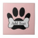 Belas charges estimula pata de cachorro e ossos. Azulejos de cerâmica quadrada personalizados. Bebê rosa. Ideia de presente única para amantes de cães. Editar texto para personalização.