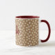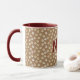 Pata impressão creme e caneca de café com nome. Padrão de impressão de pata em creme sobre um fundo marrom latte e nome personalizado em marrom, dentro da caneca e alça. Personalize substituindo o nome de exemplo Nicole pelo seu próprio nome ou nome personalizado ou texto de sua escolha. Ótima ideia de presente personalizado para uma mãe de gato, dona de cachorro ou qualquer outro amante de animais de estimação.