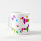 Se você é um proprietário do Dachshund ou apenas adore Dachshunds, a seguir esta escala projetada Dachshund colorida arco-íris de copos de café e as canecas são para você. As características de design seis multi-coloriram dachshunds e doze coloriram impressões da pata. Estes copos de café de alta qualidade estão disponíveis em uma variedade de estilos, tamanhos e cores, e são certos transformar-se seu copo de bebendo favorito!