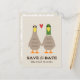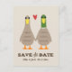 Patos-reais bonitos de mãos dadas. É divertido guardar o anúncio da data para que em breve seja o Sr. e a Sra. Personalizar este cartão postal de casamento engraçado com o nome do casal feliz e a data do casamento. Visite o Doodle World de Jenn para ver ainda mais produtos de planejamento de casamentos com este design de pato e mais convites para casamentos de animais originais.