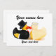 Patos de borracha noivos se beijando. Chapéu de copa e fraque com pérolas. Convite ou cartão de casamento fofo que pode ser personalizado com seu próprio texto, nomes, data e imagens.