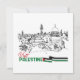 As casas palestinianas tradicionais mantêm-se orgulhosas, simbolizando a herança duradoura e a esperança constante de regresso, com as palavras "Visitar a Palestina" a serem exibidas ao lado da bandeira palestiniana.