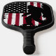 Patriotic Bigfoot Pickleball Paddle. This premium pickleball paddle features a striking Bigfoot silhouette against a distressed American flag backdrop—perfect for players who want to stand out on and off the court. It is ideal for patriotic pickleball enthusiasts, Bigfoot fans, or anyone looking to add some personality to their gear. It also makes a fantastic gift for outdoor lovers and sports aficionados!