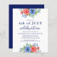 Patriótico Floral 4 de julho de Convites de festas. Convide amigos e família para a sua festa patriótica de quarta de julho com estes convites modernos de flores brancas e azuis. Personalize este convite de 4 de julho com seu evento, nome e detalhes da festa. Veja nossa coleção para combinar presentes, favoritos para festas e suprimentos patrióticos no dia 4 de julho. COPYRIGHT © 2021 Judy Burrows, Black Dog Art - Todos Os Direitos Reservados. 4 De Julho Orçamento Patriótico De Convite de festas